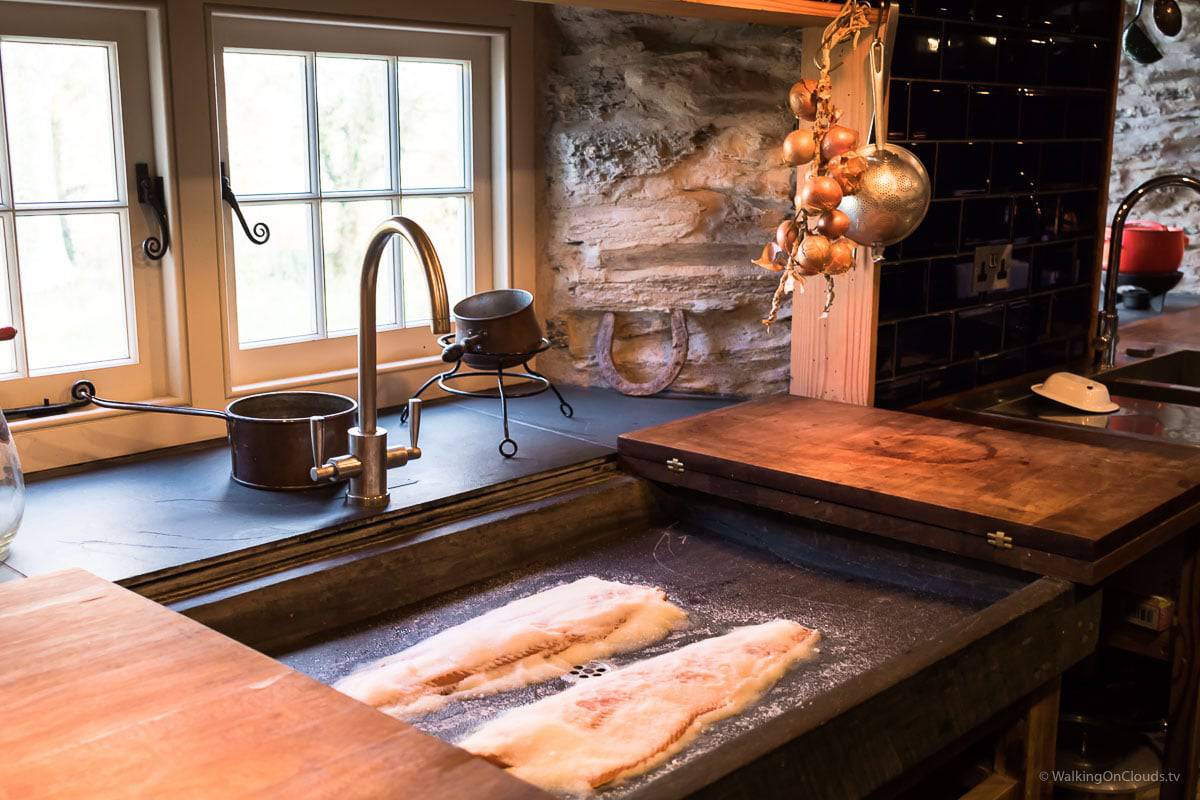 Das Abendessen bestehend aus frischem auf Holz gegrilltem Lachs, Kartoffeln, Spinat und sehr gutem Rotwein war einfach hervorragend. Als Dessert wurde eine typisch walisische Brennnesseltorte serviert.